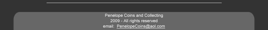 We hope you enjoy perusing at our website. Please e-mail us your questions or comments at PenelopeCoins@aol.com. |